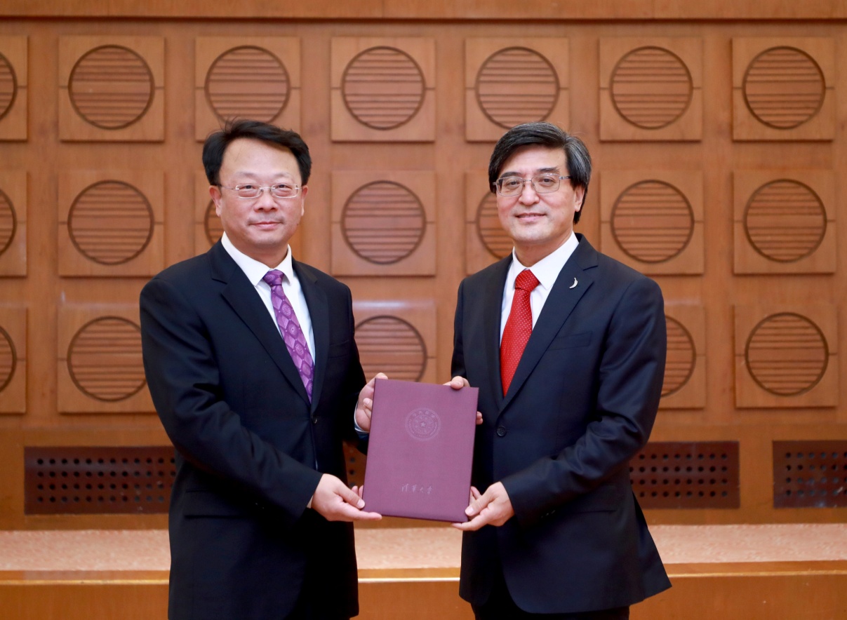 会上,王希勤为姜培学颁发了校学位委员会副主席聘书。