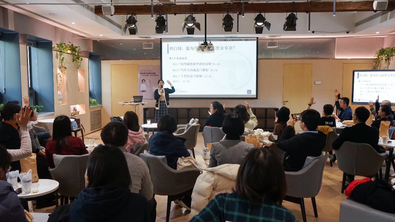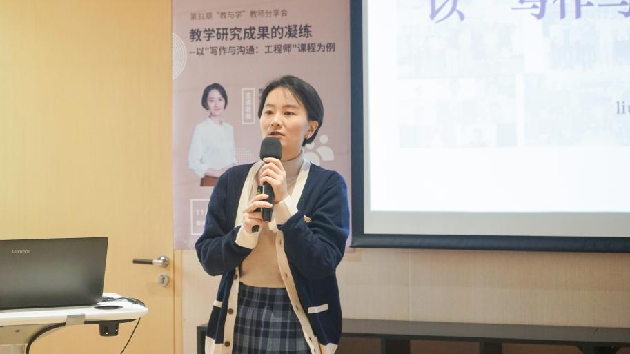 mk(中国)网11月8日电 11月2日中午,第31期“教与学”教师分享会如期举行,写作与沟通教学中心主任曹柳星以“教学研究成果的凝练”为主题,结合所开设的“工程师”主题“写作与沟通”课(简称“写作课”)的教学实践,就如何提升学生思维水平、凝练教学研究成果等问题与在场青年教师进行分享与交流。来自全校多个院系的40余位教师参与活动,教师发展中心副主任郭庆来主持活动。