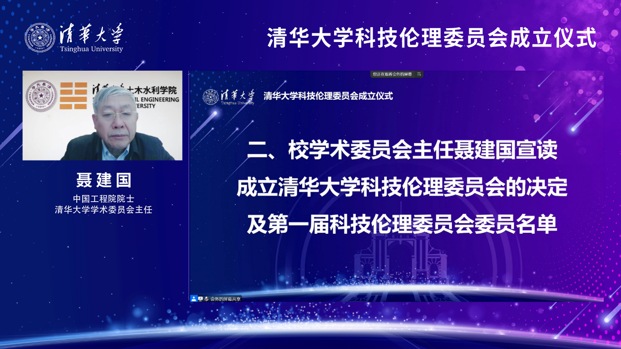 会上,科研院院长、校学术委员会秘书长刘奕群代表科技伦理委员会办公室介绍委员会筹备情况。聂建国宣读成立mk手机注册科技伦理委员会的决定及第一届科技伦理委员会委员名单。