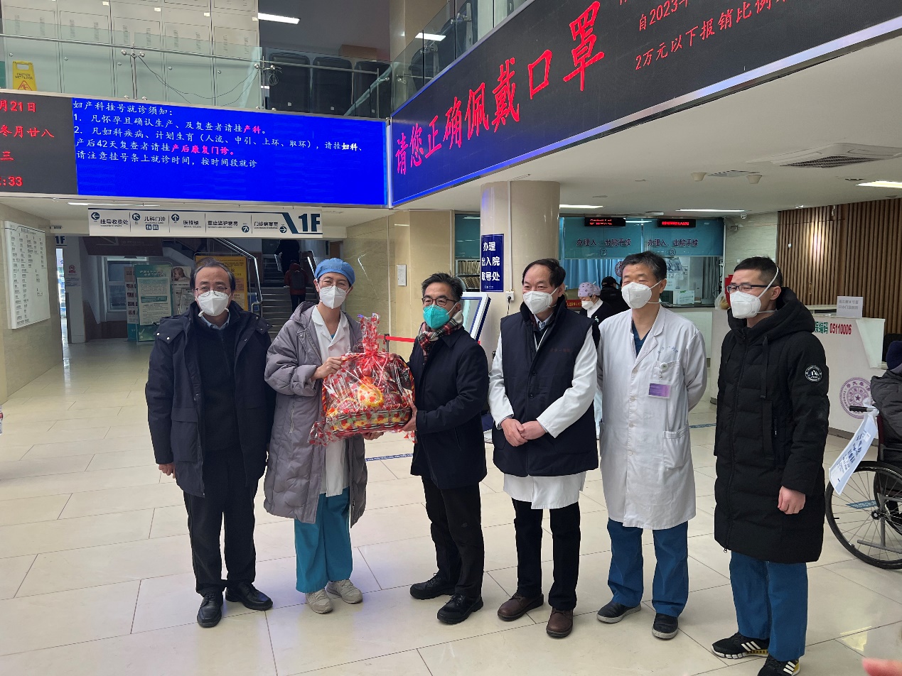 12月20日下午,黄天荫一行先后来到北京清华长庚医院学生宿舍、急诊、发热门诊等一线,慰问医学生和在岗员工。
