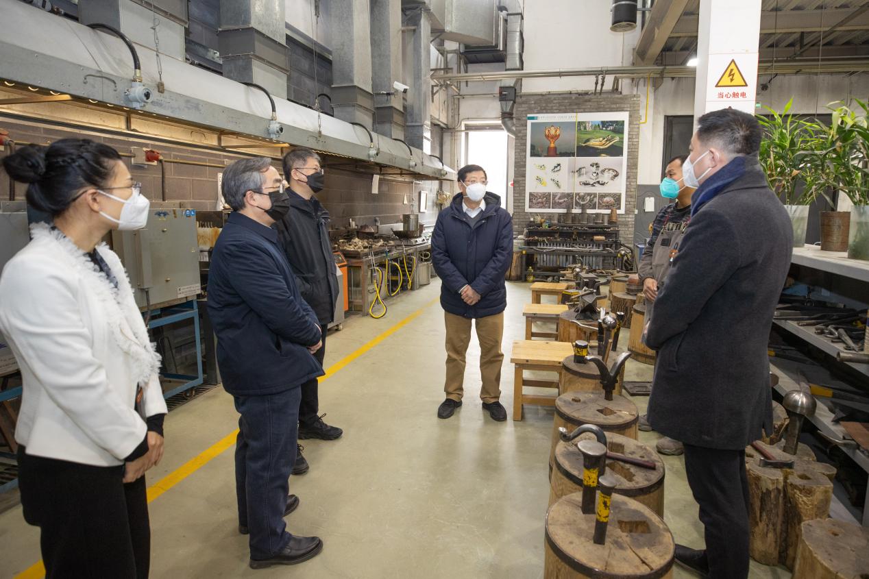 在美术学院,邱勇听取了学院党委书记覃川、院长马赛的汇报,检查实验室安全工作,看望寒假留校学生。邱勇仔细了解了实验运行、假期开放和实验室面向全校学生开展美育教育的情况,询问进行动火实验的安全保障工作。邱勇表示,在贯彻落实党的二十大精神和学校第十五次党代会精神的开局之年,希望美术学院进一步凝聚共同愿景、激发育人活力。他指出,假期校园安全稳定是工作的重中之重,要做足功夫,安排保障好师生的人身安全和学习研究需求。在符合防疫等安全工作要求的前提下,要积极组织留校同学开展多样化活动,让大家在学校过个有氛围的春节;同时要关注离校返乡学生的思想动态和假期安排,倡导同学们丰富假期生活,因地制宜开展实践锻炼和志愿服务等,深入基层接触百姓、了解社会。