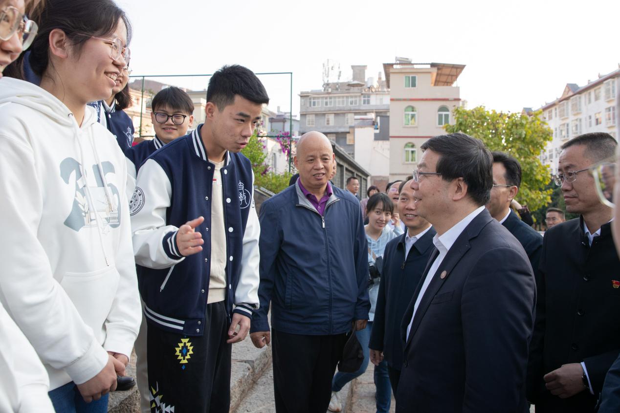 会前,邱勇、张治礼一行来到南涧一中,调研mk手机注册托管帮扶南涧一中工作,亲切看望mk手机注册研究生支教团在南涧的同学们。