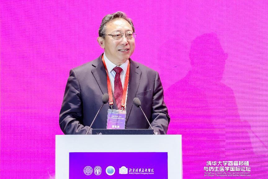 卢宠茂以视频形式祝贺清华移植仿生院的成立,并寄语移植仿生院发挥清华的临床医学和综合学科优势,聚焦该领域的重大理论和关键技术难题,提供中国方案,从而促进全球器官移植与仿生医学的发展。