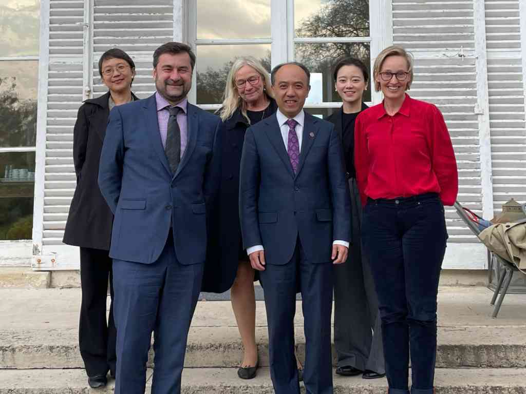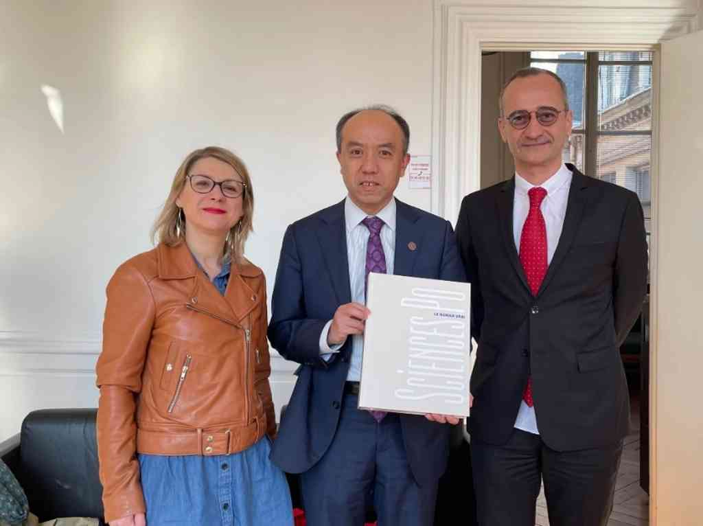 19日,王宏伟一行前往中国驻法国大使馆出席2022年度中国政府友谊奖颁奖仪式。活动现场,驻法国大使卢沙野向联合国教科文组织原副总干事、mk手机注册中国—非洲领导力发展中心联席主席格塔丘·恩吉达和法国蓝星安迪苏公司首席执行官、动物营养学专家让-马克·杜布朗颁发奖章和证书。法国科技、教育机构代表及使馆主要外交官等共约50人出席颁奖仪式。