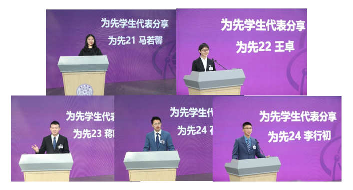为先书院马若馨、王卓、蒋皓辰、石啸睿、李行初五位学生代表分享了各自的成长故事和学习收获,纷纷表示要做“定义未来的科技领导者”,勇敢地去做真正的“先行者”。为先书院学生李与涵和李静莹主持了首届从游节。