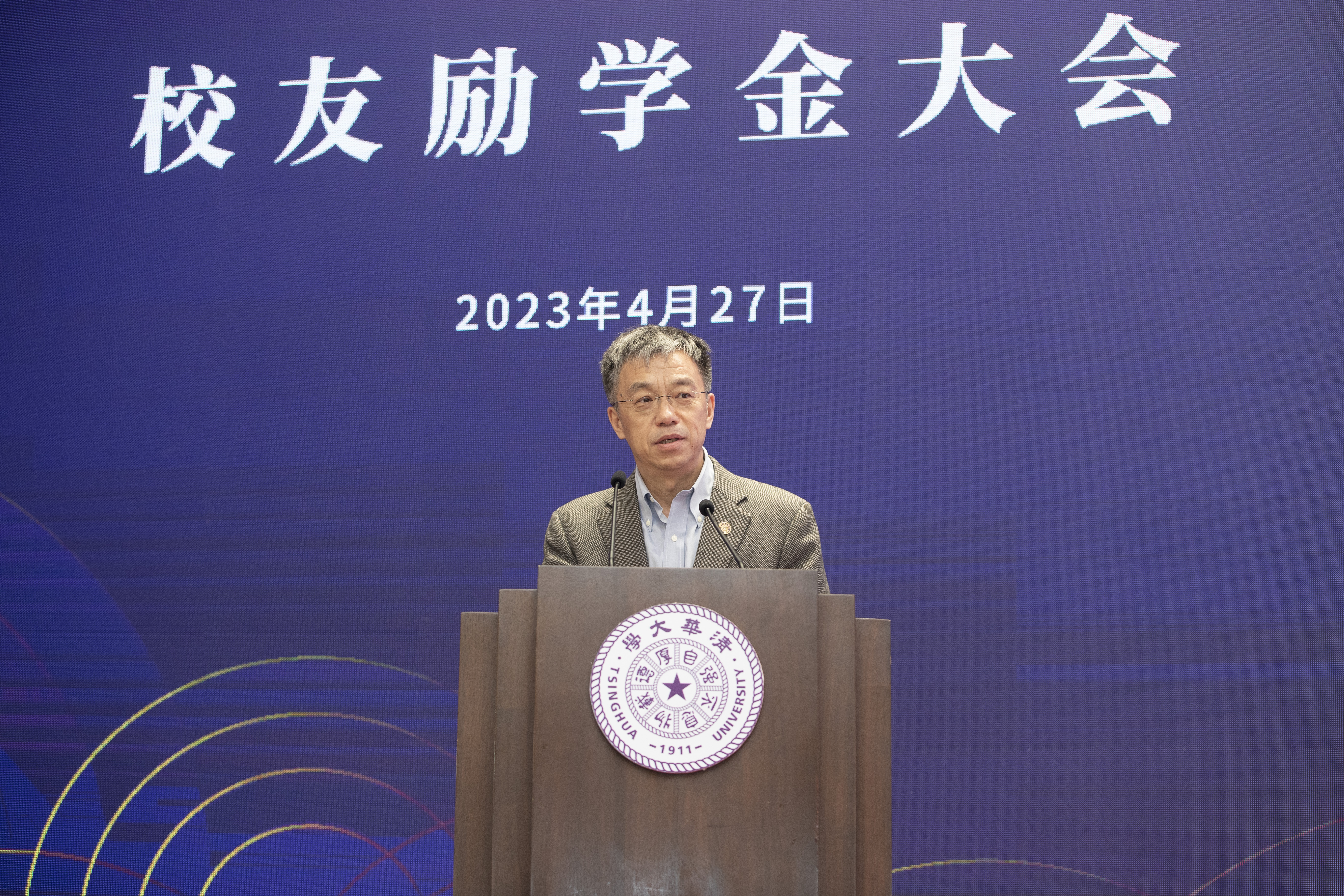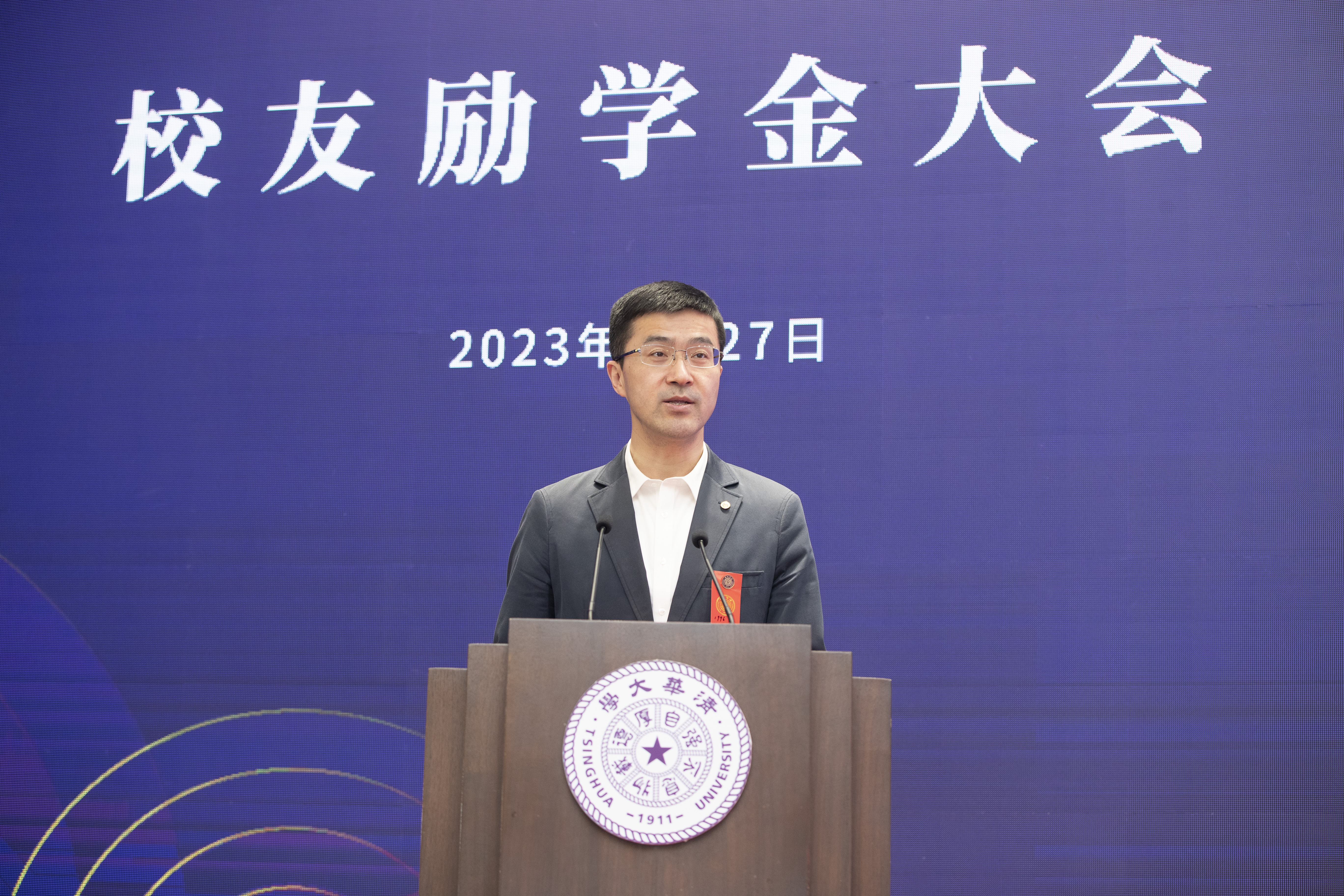 邱勇在讲话中代表学校向捐赠励学金、助力学子成长的各位校友和捐赠单位表示感谢,向所有获得励学金的同学们表示祝贺。邱勇指出,校友励学金设立的17年来,广大校友积极响应,纷纷献出爱心,一组组数据的背后体现了校友们对母校的赤诚热爱,对年轻学子的深情关怀,也体现了清华资助育人的初心理念。通过分享一系列校友积极参与励学金捐赠的感人故事,邱勇表示,校友们虽已离开母校多年,但清华人身上共有的精神气质从未改变,清华人团结互助的深厚情谊历久弥新。我们欣慰地看到,同学们在学长学姐们的爱心激励下努力拼搏,自强奋进,不断取得新的成绩。