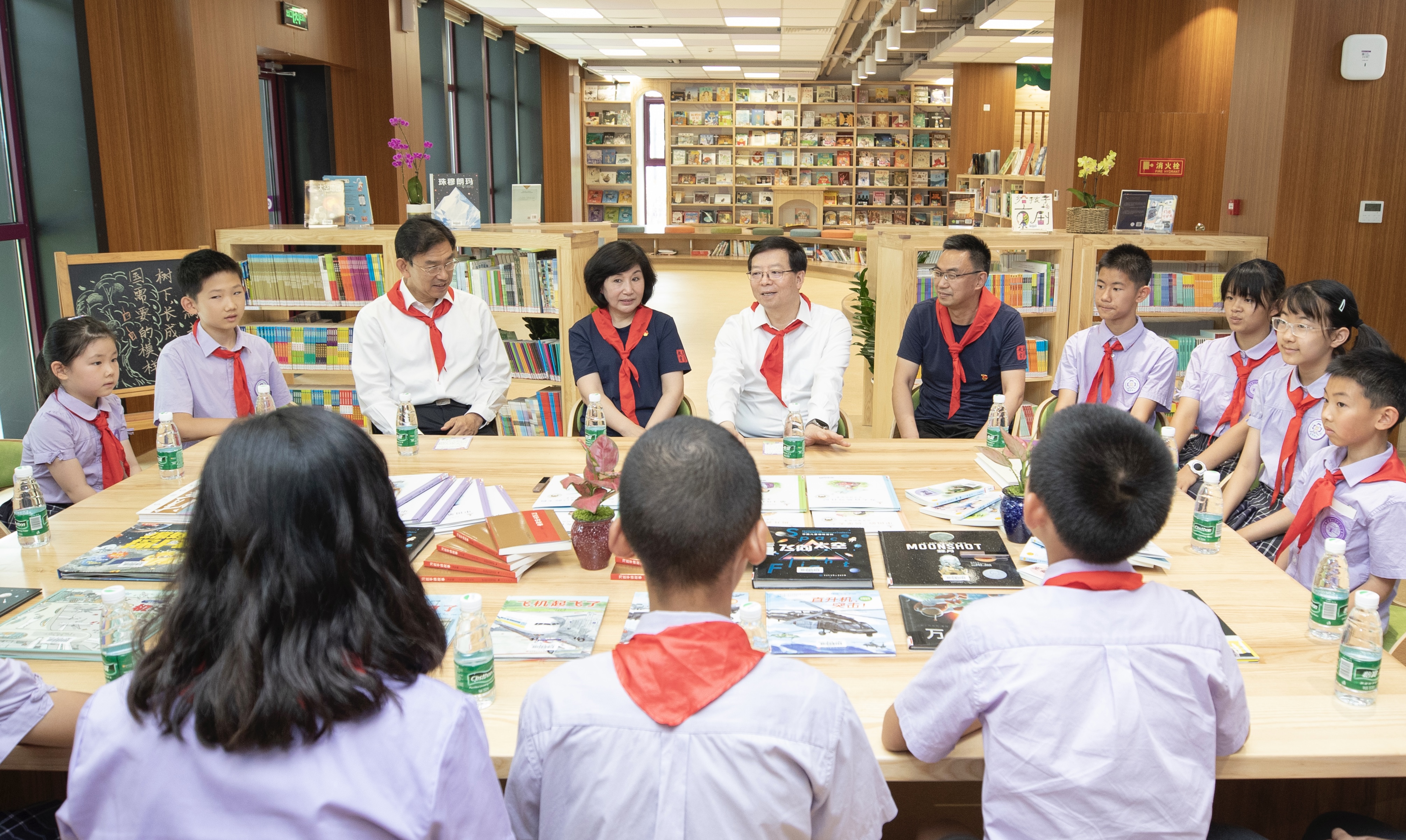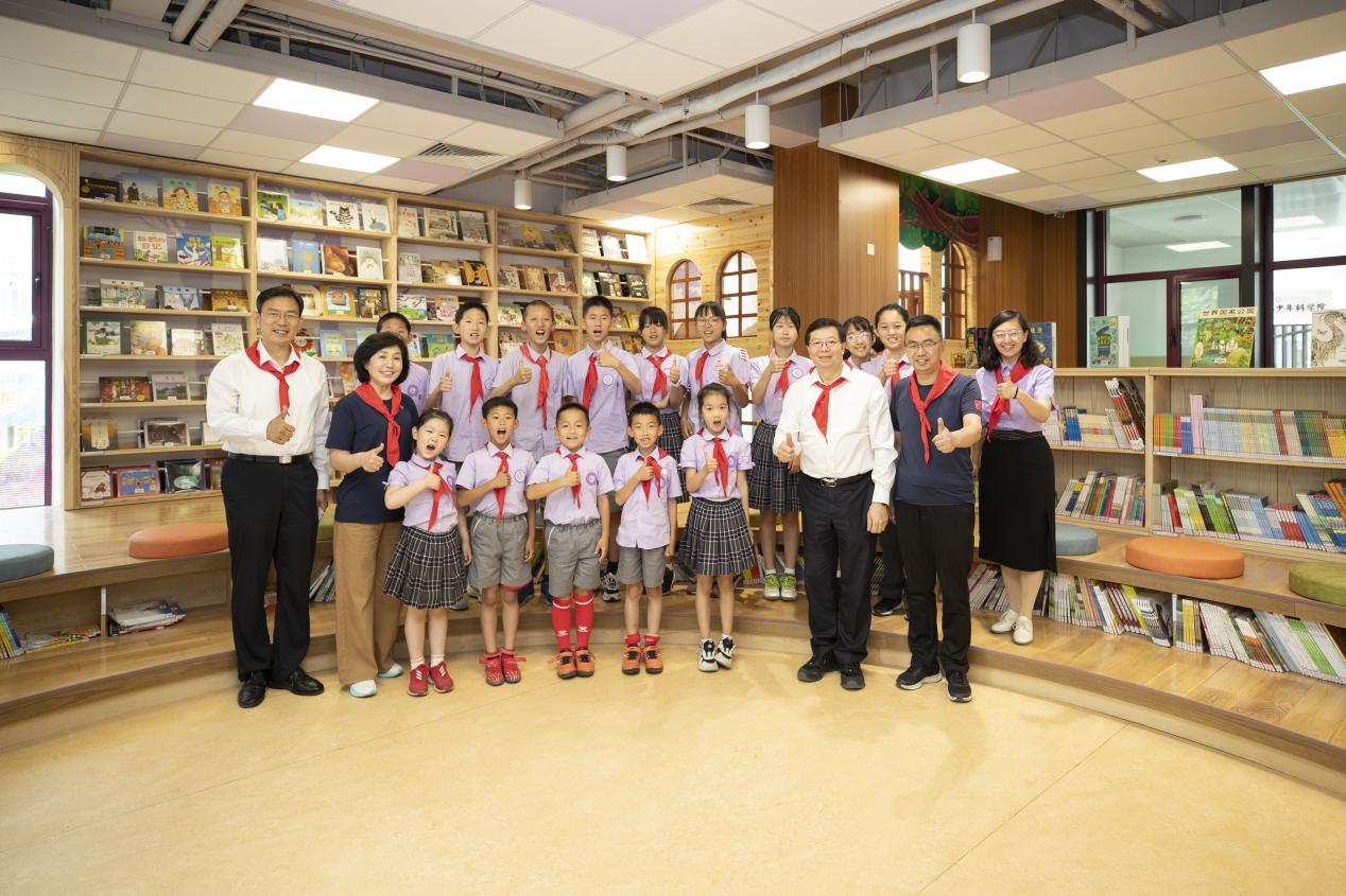 大手拉小手,一起去阅读。图书馆内,一年级和六年级的同学们正在大队辅导员的带领下总结入队活动。邱勇来到孩子们中间,与大家互动交流。“我们班刚刚在足球联赛上获得了双冠的好成绩!”“今天哥哥姐姐们为我们戴上了红领巾,特别激动!”“您觉得哪方面的学习是最重要的?”“我们要从小热爱劳动,对吗?”孩子们踊跃发言,分享自己的“一日学校生活”,纷纷向“大朋友”邱勇提出关心的问题。