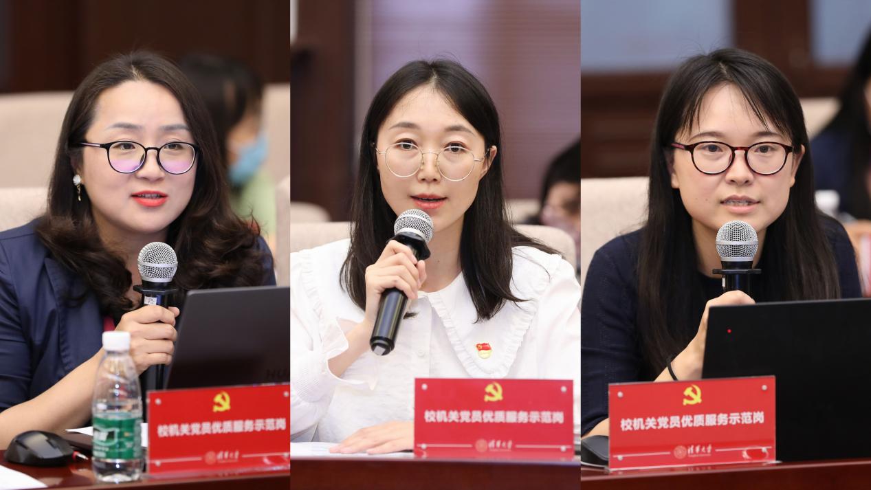 第三批“校机关党员优质服务示范岗”创建代表发言(从左至右:金明珠、杨春、王蕾)