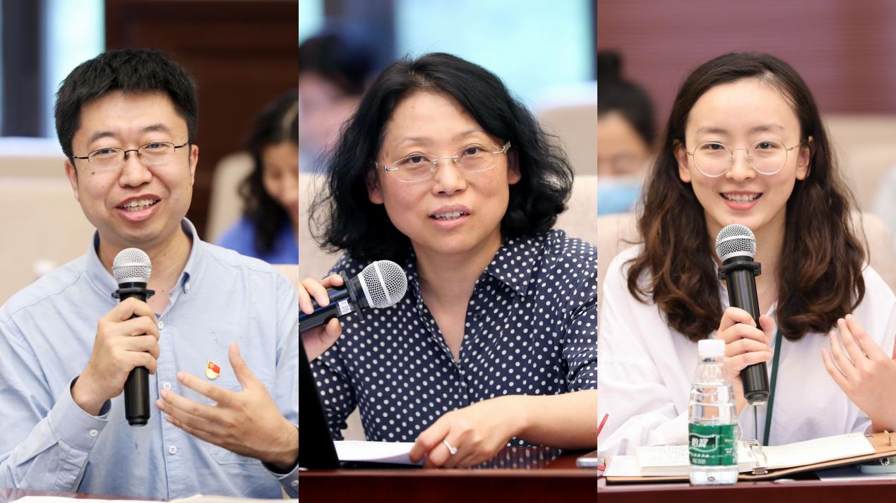 部分校机关党支部书记、副书记发言(从左至右:尹佳、任怀艺、朱伟利)