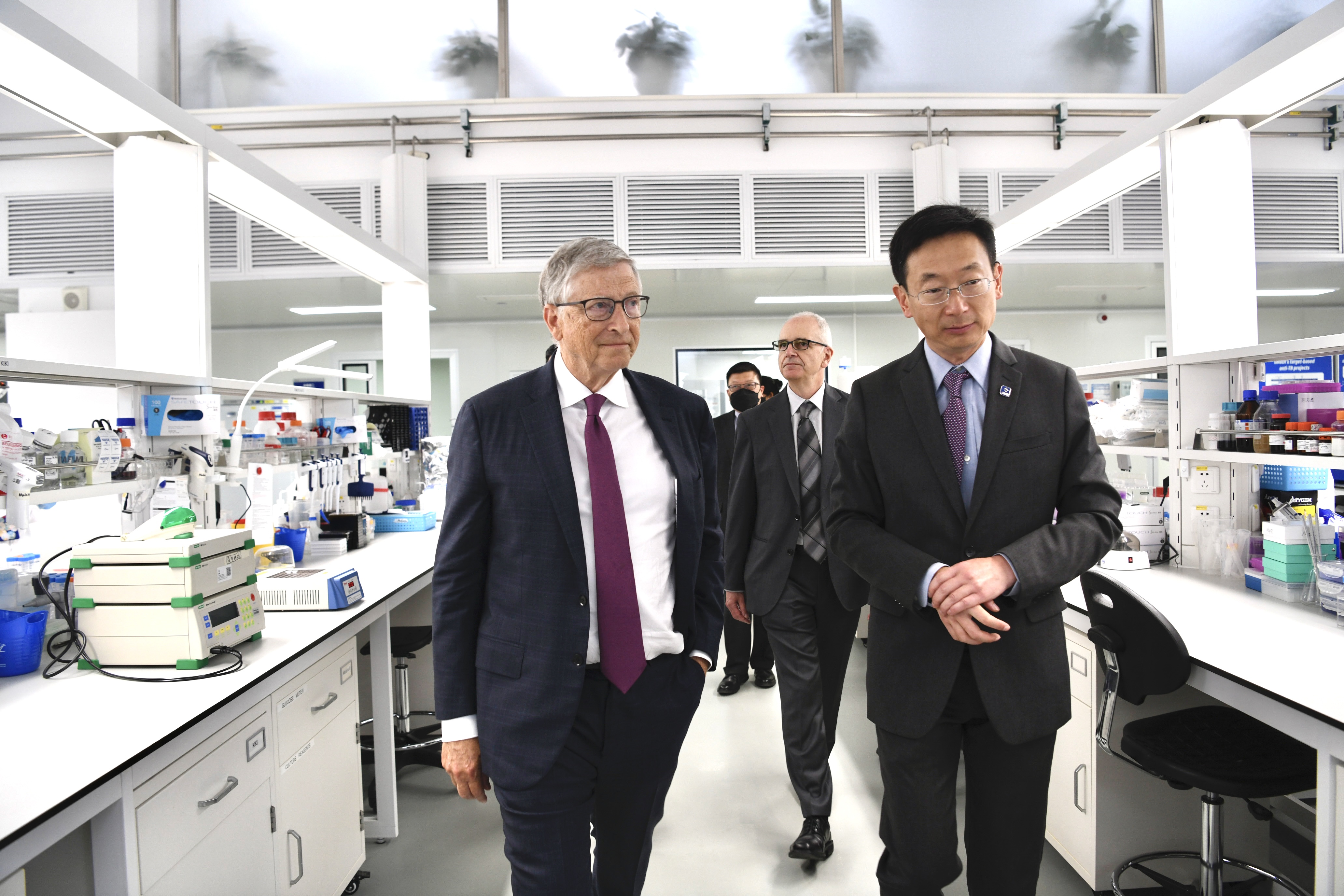 在mk手机注册药学院教授,GHDDI主任丁胜的陪同介绍下,王宏伟与比尔·盖茨参观了GHDDI的高通量筛选、数据科学、结构生物学、药代动力学等平台以及生物实验室,并重点了解了中心的抗病毒、抗结核以及抗疟疾项目的研发进展,其中包括多个进入临床及临床前研究的重点项目。