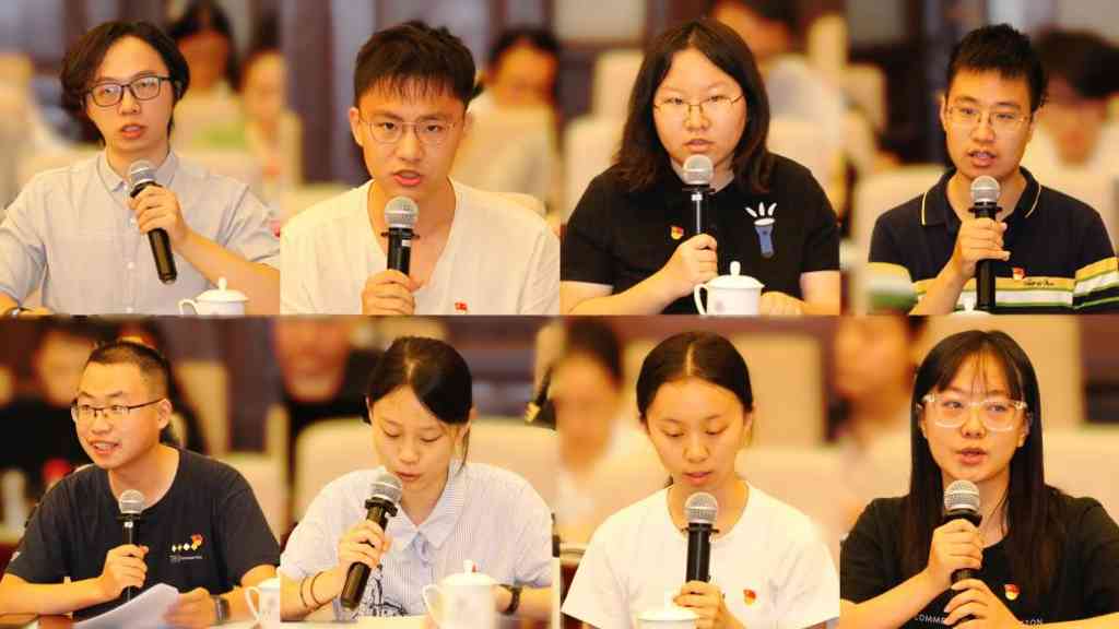 新雅19党支部首任支部书记、9字班带班辅导员占元汇,周非凡、冯雨霏、刘行健、潘宇昂、金思宇、李清扬、谢佩遥等八位新雅19党支部学生代表分别作了交流发言。