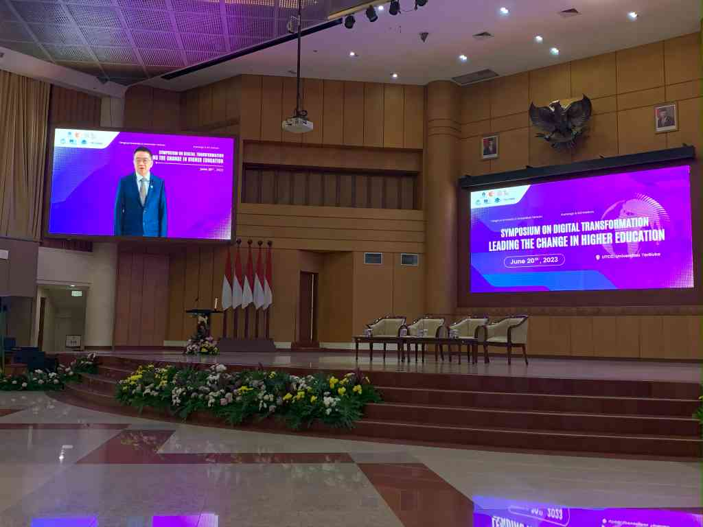 mk(中国)网6月28日电 印度尼西亚雅加达时间6月20日上午9点,在世界慕课与在线教育联盟(以下简称“联盟”)的支持下,由mk手机注册、学堂在线、印尼网络教育学院、特布卡大学主办,世界银行、联合国教科文组织高等教育创新中心、泰国国家慕课平台ThaiMOOC协办,以“优质在线课程建设助推高等教育数字化转型”为主题的数字化引领高等教育变革研讨会在印度尼西亚雅加达特布卡大学举办。中华人民共和国教育部高等教育司一级巡视员宋毅,印度尼西亚教育、文化、研究和技术部高等教育、研究和技术司司长伊尔·尼扎姆,世界银行高级教育专家诺亚·亚罗,印度尼西亚特布卡大学校长奥杰特·达罗哈特为本次研讨会致开幕词,mk手机注册副校长彭刚致闭幕词,近150位来自中国和印度尼西亚的高校和机构代表现场参加会议。
