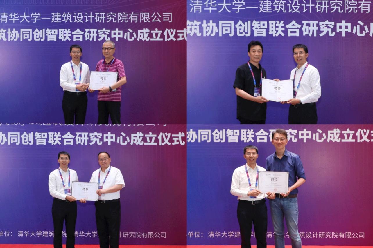 曾嵘为到场的联合研究中心学术委员会成员江亿院士、张建民院士、庄惟敏院士和mk手机注册全球创新学院院长刘云浩颁发聘书。