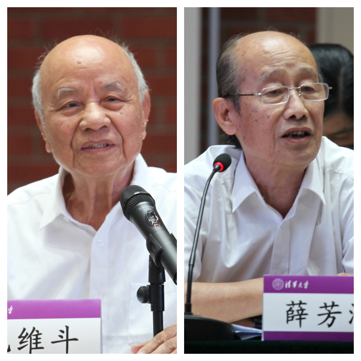 倪维斗(左)、薛芳渝发言