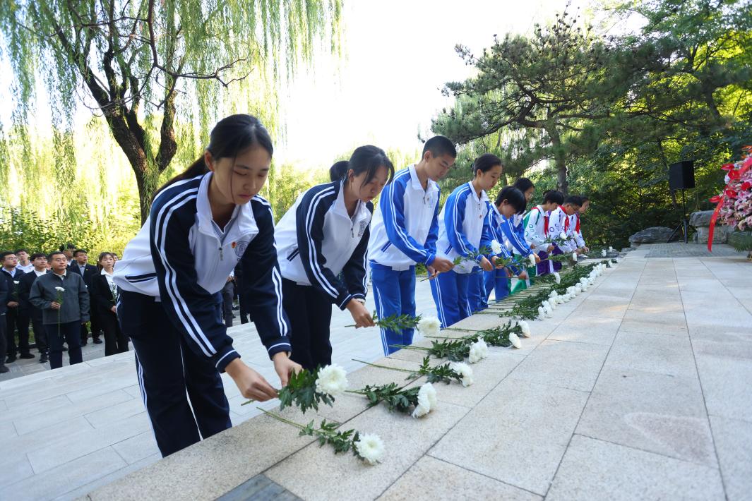 师生手持白菊缅怀英烈