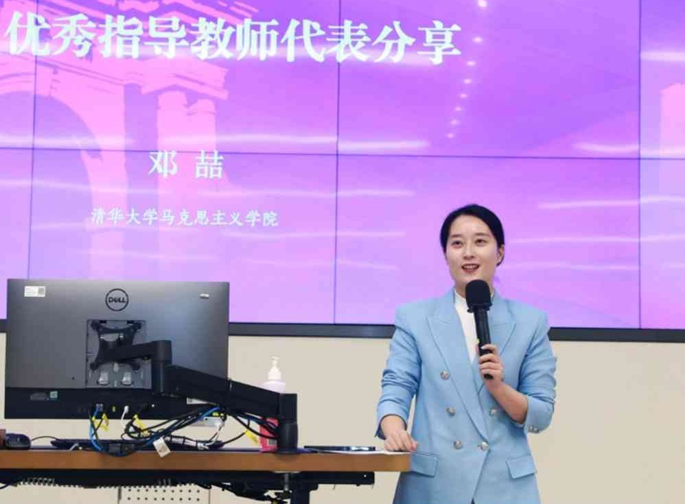 马克思主义学院党委副书记、研工组组长邓喆作为指导教师代表介绍了马克思主义学院研究生前往西藏日喀则、新疆可可托海的实践经历,刻画了一个个立志投身西部、报效祖国的青年形象,鼓励大家在社会实践中找寻人生前进的力量,将热忱和汗水洒向祖国最需要的地方。