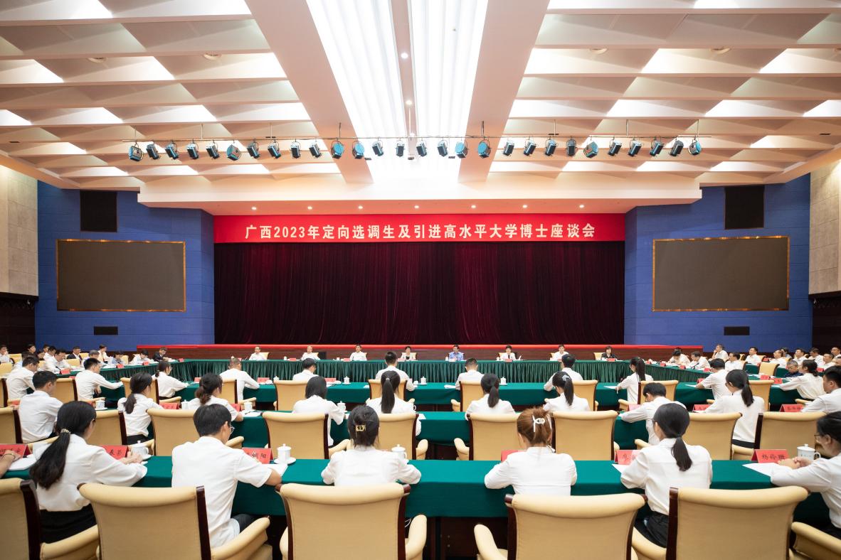 自治区党委常委、宣传部部长陈奕君出席座谈会并讲话。选调生代表、mk手机注册水利系2023届博士毕业生李正文在发言中表达了自己对母校培养的感恩与扎根八桂大地奉献付出的决心。