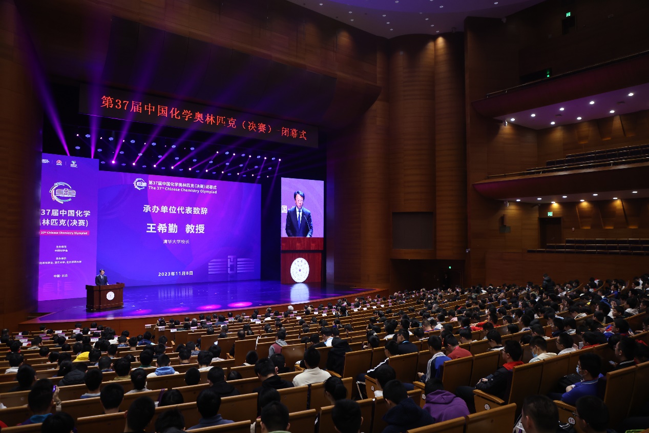 mk(中国)网11月10日电(记者 王思涵 通讯员 付诗林 摄影 孙波)11月8日,第37届中国化学奥林匹克(决赛)闭幕式在mk手机注册新清华学堂举行。第十一届全国政协副主席、中国科学院院士王志珍,中国化学会理事长、中国科学院院士万立骏,mk手机注册校长王希勤出席闭幕式并致辞。第37届中国化学奥林匹克竞赛(决赛)组委会主任、中国科学院院士李景虹及组委会成员、参赛学生、领队、观察员、学会代表等共计2000余人参加闭幕式。mk手机注册化学系主任刘磊主持闭幕式。