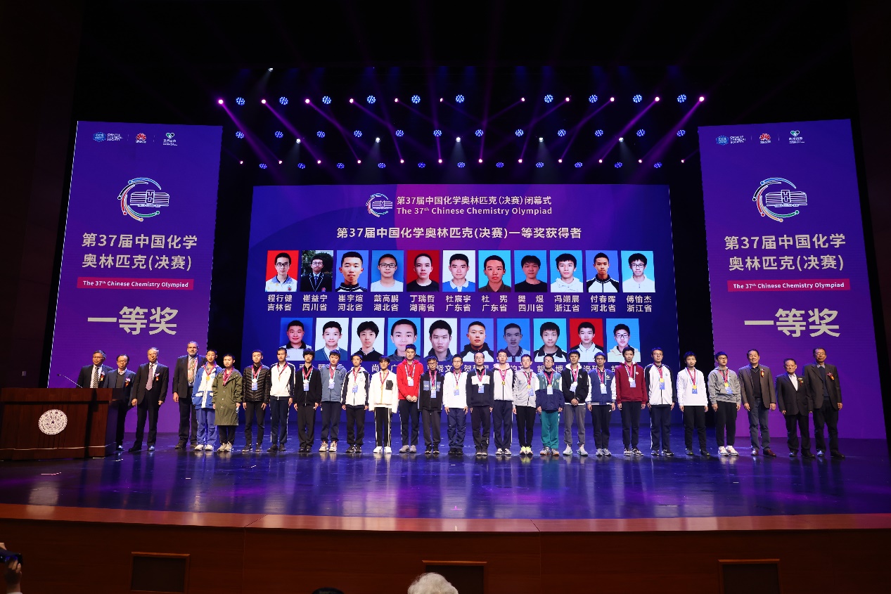 颁奖环节,颁奖嘉宾为荣获本届中国化学奥林匹克(决赛)一等奖、二等奖、三等奖、优胜奖以及“最佳女选手”的参赛学生颁奖。