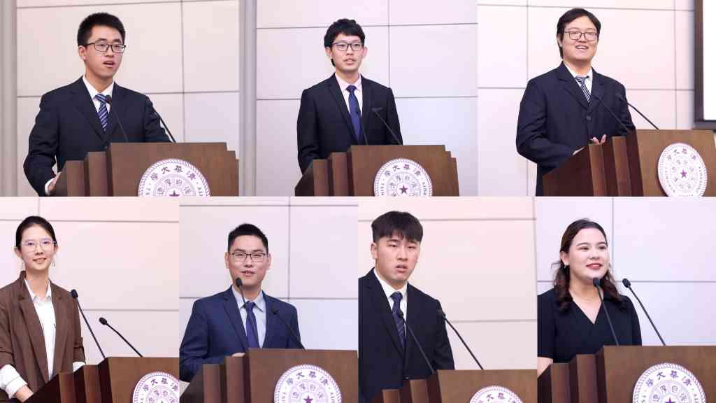 候选人分享(从左至右、从上至下依次为:朱颖雷、应文昱、高焕昂、周汝赟、赵海萌、王子丁、尤丽娅)