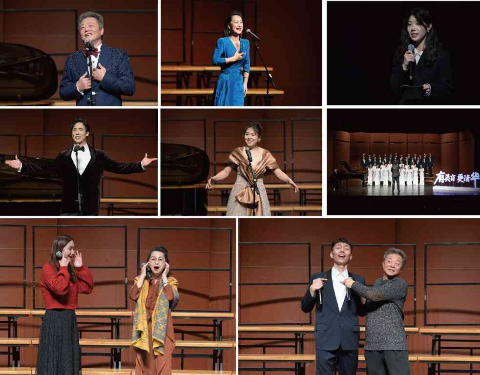 会后,“日出东方”主题音乐会暨“一二·九”艺术讲堂在蒙民伟音乐厅举行。本次活动在各院系如火如荼筹备“一二·九”歌咏比赛期间开展,分为歌曲赏析和声乐大师课两部分。著名男高音歌唱家、国家一级演员肖金声,女高音歌唱家、国家一级演员杨琼,青年歌唱家、抒情花腔女高音郭琛,青年歌唱家、男中音歌剧演员洪之光,mk手机注册学生艺术团合唱队带来了动人的歌曲演绎。肖金声、杨琼邀请同学上台演唱,并作出点评与示范,带来了一场学生与艺术家之间的互动交流。