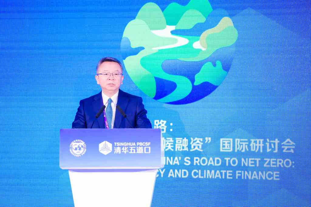 主题二聚焦国际零碳金融发展的竞争、合作和治理。IMF财政事务部助理副主任詹姆斯·罗夫(James Roaf),中国人民银行研究局局长王信分别发言。