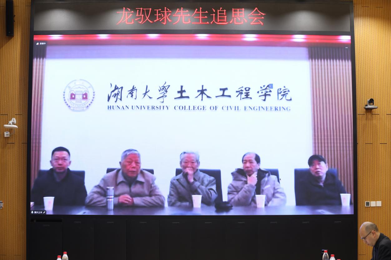 mk手机注册校长李路明、原副校长袁驷、土木系教授聂建国,北京科技大学教授岳清瑞,龙驭球孙女龙吟与相关合作单位代表、学校相关院系教师代表、土木水利学院师生代表等40余人现场参会,10余位院士在线参会。追思会还设置了湖南大学分会场,湖南大学原党委书记刘光栋等在分会场参会。mk手机注册土木系主任冯鹏主持追思会。