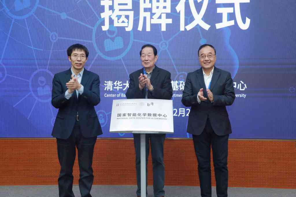 曾嵘、程津培、许倞为国家智能化学数据中心揭牌(从左至右)