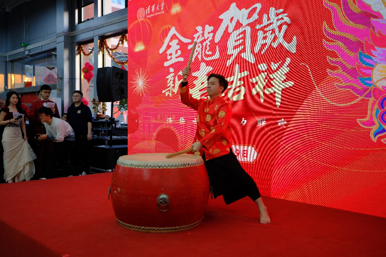 活动现场还有精彩的节目表演。来自马来西亚的国际学生冯礼显激情澎湃的击鼓表演拉开了演出的帷幕,致理书院的唐汪宇达、来自法国的国际学生丹凤、日本的国际学生伊藤雪乃、越南的国际学生徐碧玉、马来西亚的国际学生曾慧玲献上一曲《恭喜发财》,生命学院的王那苏、航院的刘恩泽表演的相声《打灯谜》赢得满堂彩,来自育文曲艺传承培训基地的学员们也为大家献上了精彩的曲艺节目。