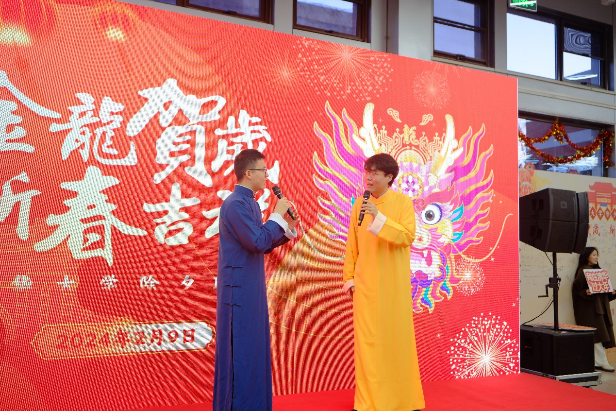 活动期间进行了三轮抽奖,校领导和嘉宾现场开奖,击鼓传花的游戏贯穿其中。活动结束后,大家一起品尝了美味的年夜饭。