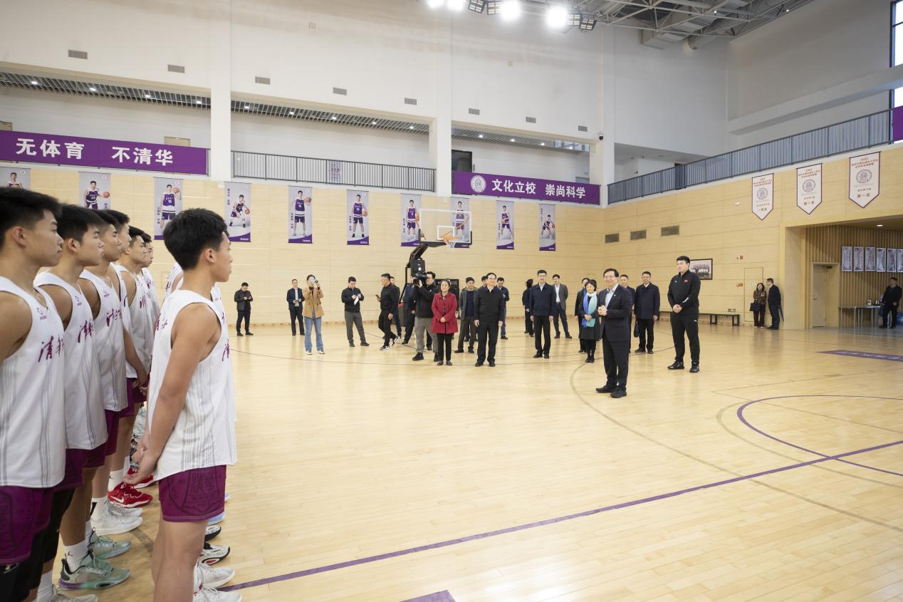 与清华附中福州学校男篮队员交流