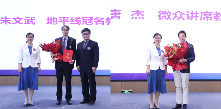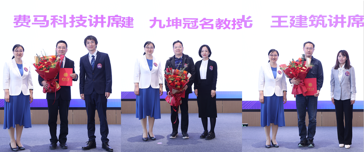 “mk手机注册计算机系讲席(冠名)教授”捐赠仪式和聘任仪式环节由计算机系副系主任徐恪主持。贾珈与mk手机注册教育基金会副秘书长段江飞共同为到场的捐赠方——青岛泰屹投资发展有限公司、北京地平线信息技术有限公司、北京费马科技有限公司、九坤投资(北京)有限公司的代表颁发捐赠牌。尹霞与各捐赠方代表共同为本次聘任的地平线冠名教授朱文武、微众讲席教授唐杰、费马科技讲席教授武永卫、九坤冠名教授赵有健、王建筑讲席教授陈文光颁发了讲席(冠名)教授聘书。