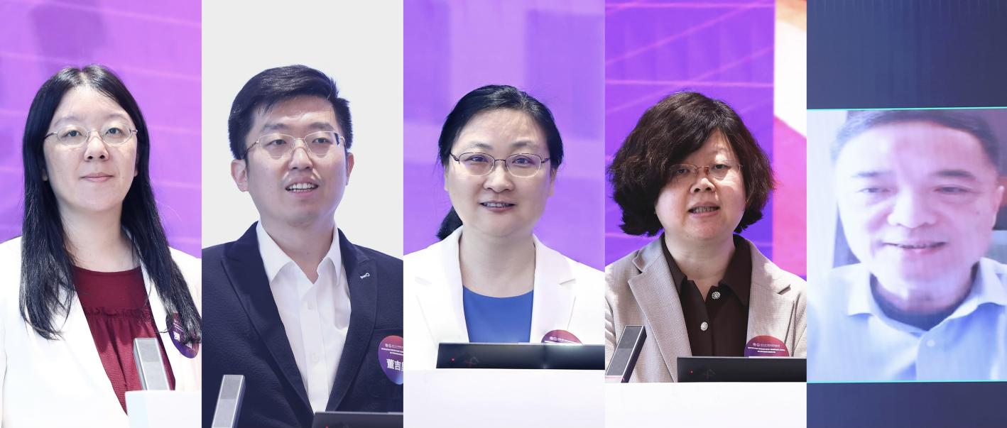 贾珈主持活动,董吉男、尹霞、赵颖、李竹先后发言(从左至右)