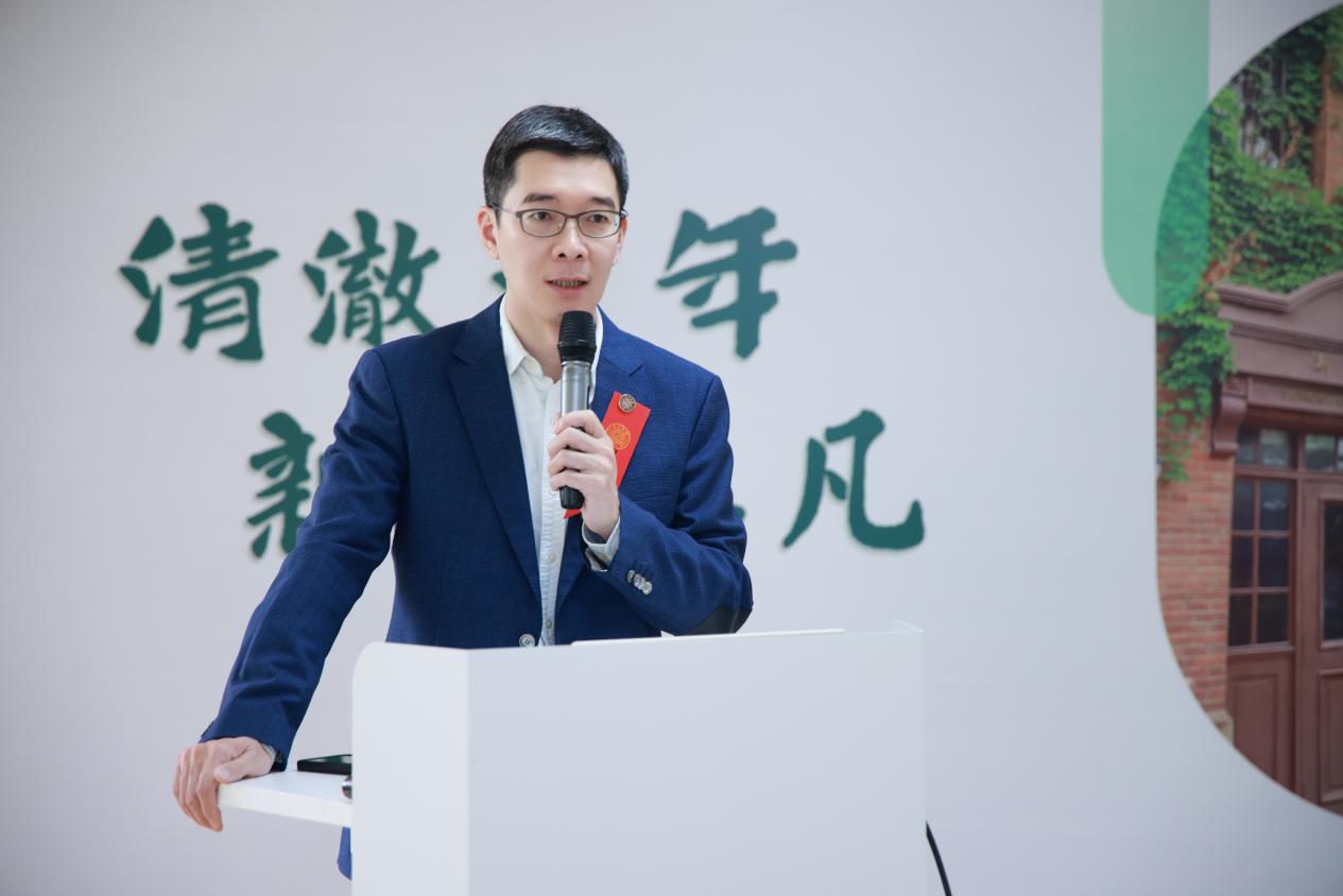 周庆安向院友们介绍了学院的整体发展。经过22年的建设,学院培养了近三千位毕业生,这些校友们目前奋战在新闻工作第一线,为中国新闻事业与新闻传播学科发展贡献智慧和力量。他还引用了1916年《清华周刊》的报道,发现在同一历史时期,清华已经开始了对于新闻教育事业的思考和探索。他期待在学院与院友的努力下,不断提升人才培养质量,推动新闻教育枝繁叶茂。