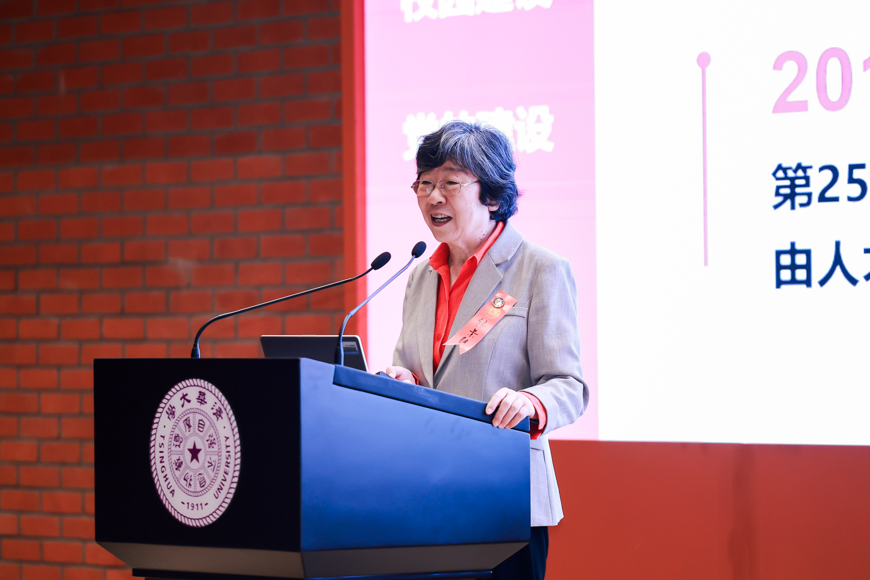 韩景阳表示,能够参加此次深圳庆祝大会,看到许多依旧朝气蓬勃的老学长、老校友回到校园,她感到无比振奋和感动,也深刻感受到清华“育人至上,体魄与人格并重”的全面办学理念和“争取至少为祖国健康工作五十年”的体育精神。清华有“三宝”:校训、校园和校友。许多清华人毕业之后投身祖国的各行各业,为经济和社会的发展作出突出贡献,为母校争得了许多荣誉。最后,韩景阳感谢各位学长校友一直以来对学校发展的关心与支持,感谢全国各地的校友会为母校的发展和校友的凝聚尽心尽力,欢迎大家“常回家看看”。