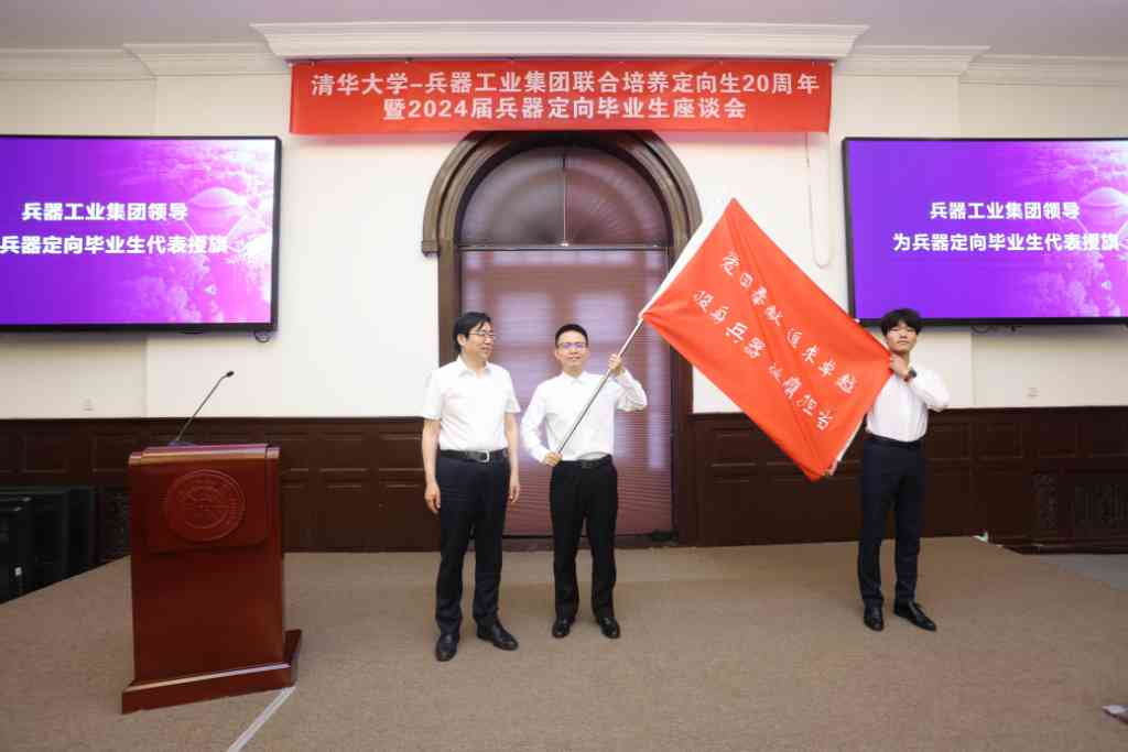 蒋亮平向即将奔赴兵器工业集团有关单位工作的毕业生代表授旗。