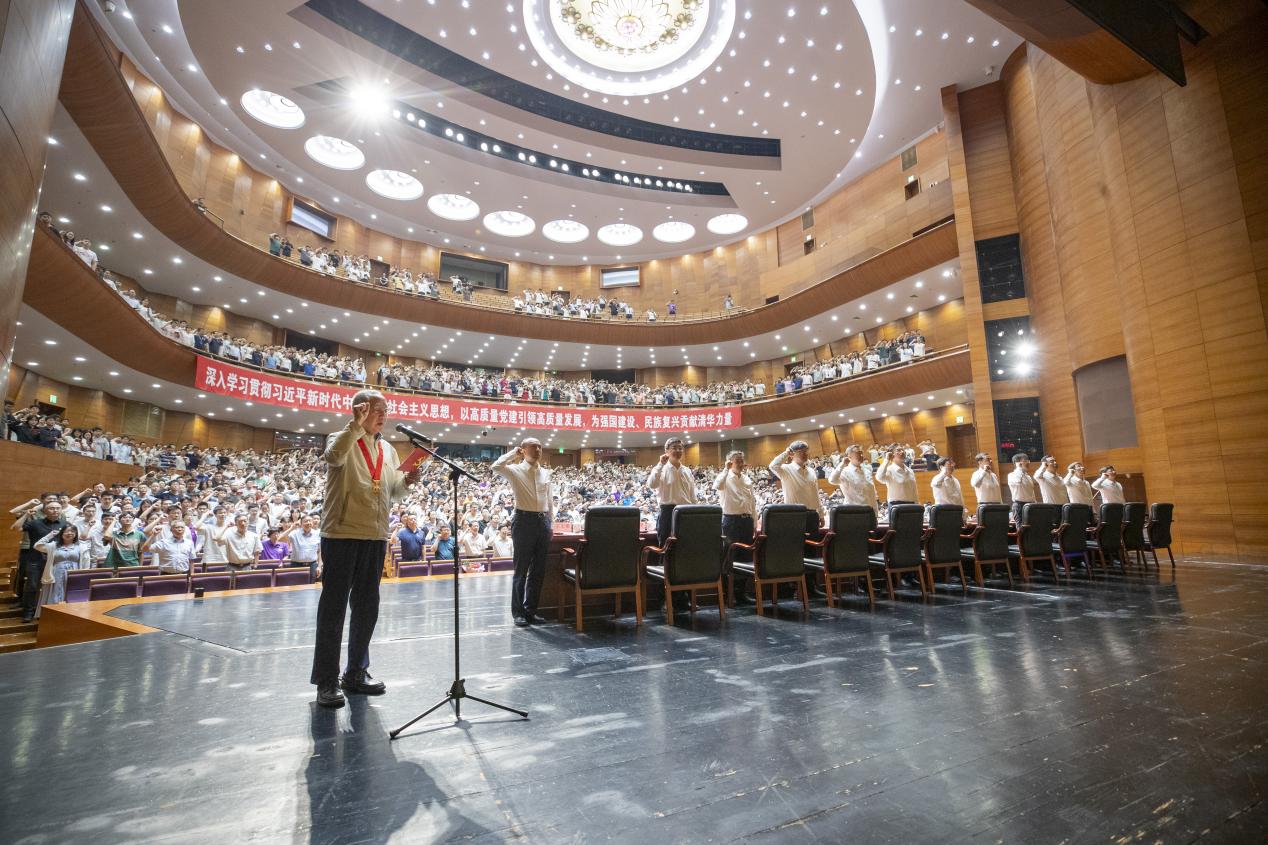 在“光荣在党50年”纪念章获得者、软件学院教授、中国工程院院士孙家广的领誓下,过去一年入党的新党员面向党旗庄严宣誓,与会党员们也一同重温了入党誓词。