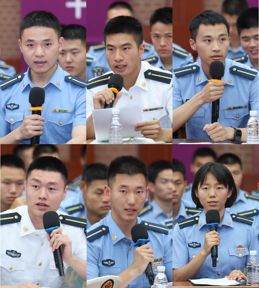 航天航空学院党委书记陈海昕汇报了2020级、2021级联合培养飞行学员培养情况。任课教师代表、航天航空学院党委学生工作组组长姜辰为学员送上寄语。2020级、2021级联合培养飞行学员代表分别分享了在学习、训练等方面的成长收获,并表示会把在清华学会的知识本领投入到强军事业中,将个人成长与强国强军事业相联系,为强军事业不懈努力奋斗。