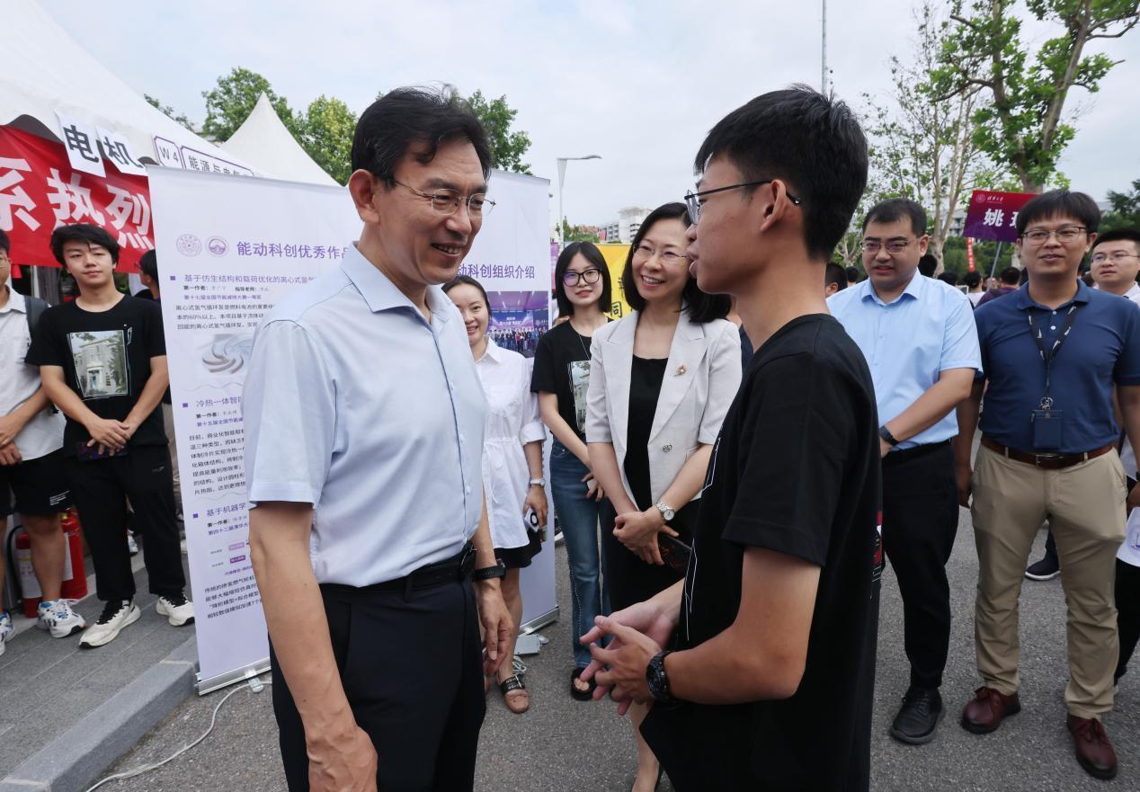 无体育,不清华。体育代表队宣传点前悬挂的一排奖牌格外引人注目。邱勇询问了现场报到新生的专业方向,勉励同学们发扬清华优良学风、传承清华体育传统,延续清华荣光。今年是“两弹元勋”、清华校友邓稼先同志诞辰100周年,以邓稼先为原型的mk手机注册原创话剧《马兰花开》即将迎来第100场公演。邱勇来到学生艺术团宣传点,鼓励剧组师生不断创新艺术形式,向新同学们更好地讲述邓稼先等老一辈科学家爱国奉献的故事。