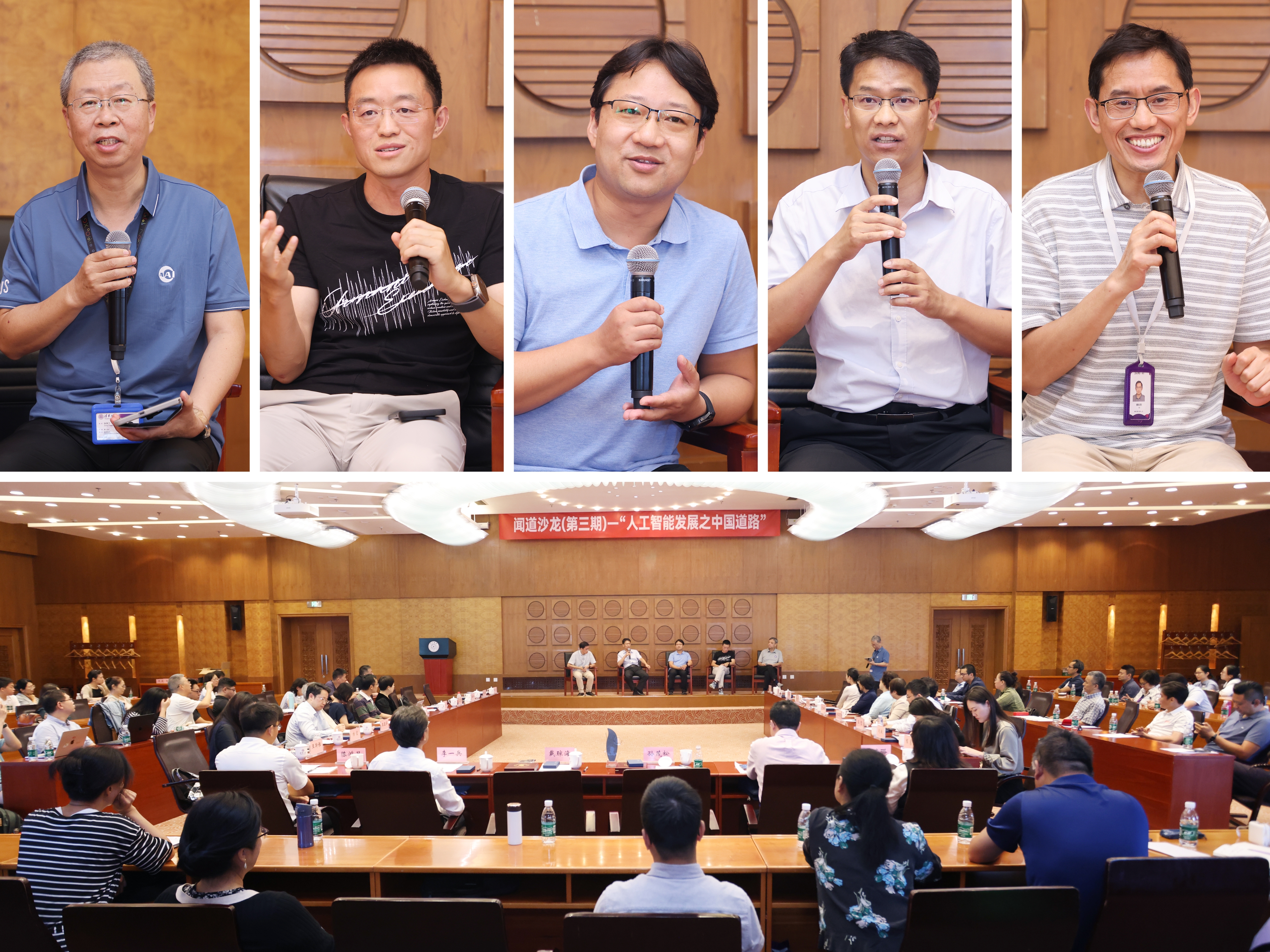圆桌讨论(第一行从左至右:张学工、唐杰、汪小我、鲁继文、黄民烈)