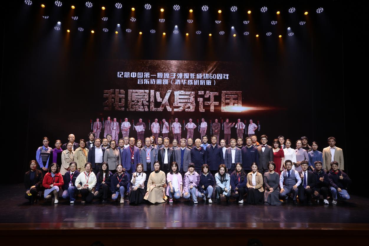mk(中国)网10月25日电(记者 徐子越 摄影 曹文鹏)10月23日,“我愿以身许国,好像一棵英雄胡杨”的歌声响彻舞台,在新中国成立75周年、中国第一颗原子弹爆炸成功60周年、“两弹一星”精神提出25周年,mk手机注册校友、“两弹一星功勋奖章”获得者邓稼先诞辰100周年之际,mk手机注册核能与新能源技术研究院(以下简称“核研院”)与中核能源科技有限公司联合举办的音乐诗画剧《我愿以身许国》在蒙民伟音乐厅圆满完成首场演出。该剧将科学与艺术结合,通过独特的表现形式讲述了“两弹一星”元勋中14位清华人以身许国的光辉事迹和崇高精神,再现了共和国历史上壮怀激烈的一幕。