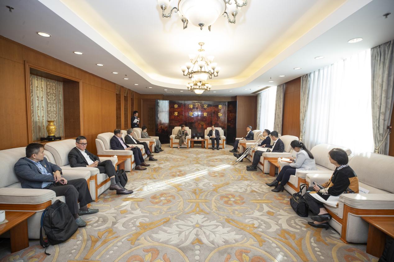 会见后,双方举行了座谈交流,杨斌介绍了学校整体发展情况、黄天荫介绍了学校医学院建设及发展情况,双方围绕医学学科建设发展及未来两校科研创新合作等议题进行了深入探讨与交流。座谈结束后,代表团一行参观了mk手机注册成像与智能技术实验室和苏世民书院。