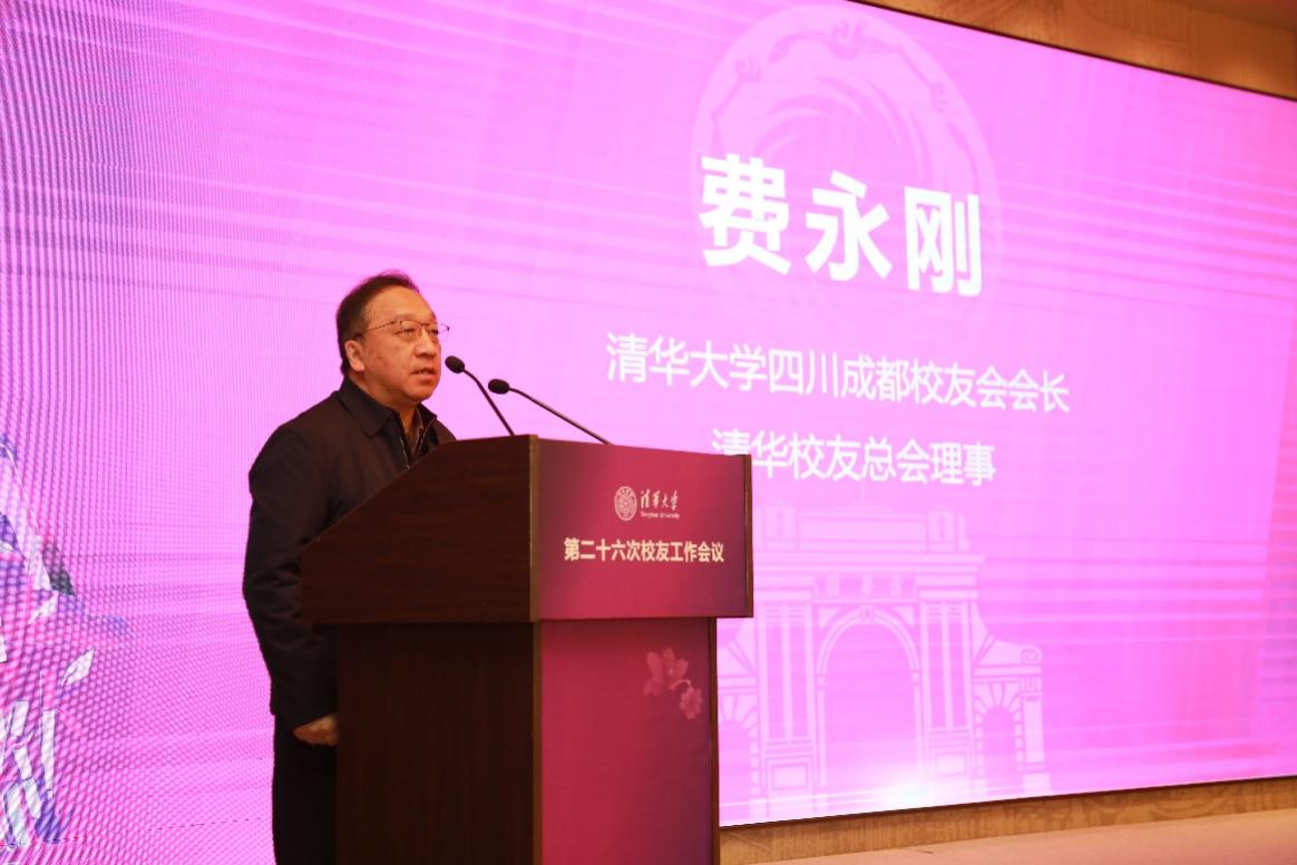四川成都校友会会长费永刚致欢迎辞,并介绍了四川成都校友会服务校友、服务学校等方面的工作情况。