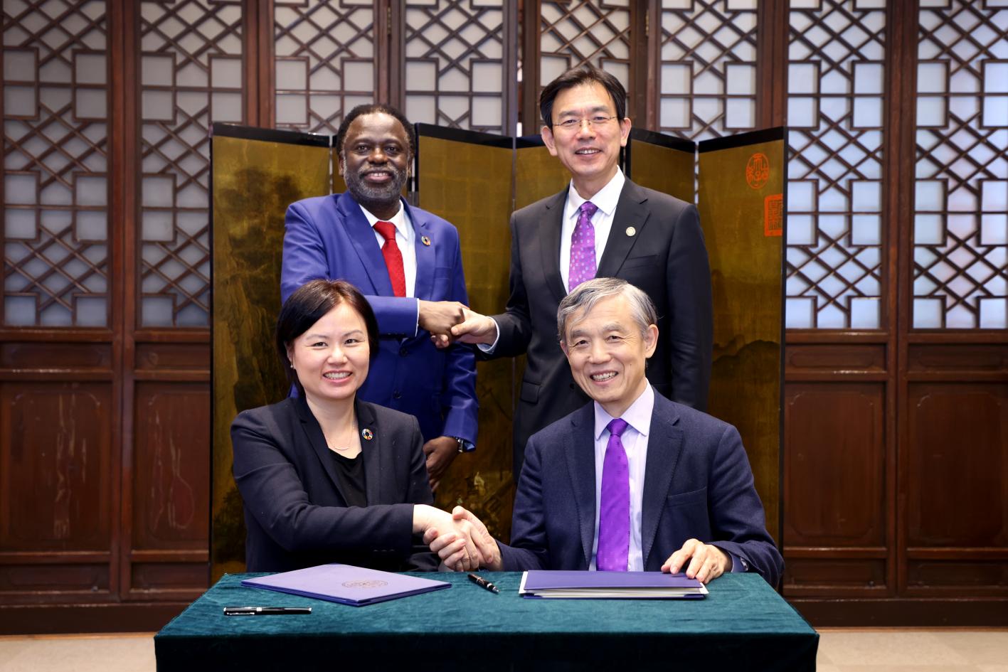 在李路明和马瓦拉的见证下,mk手机注册人工智能国际治理研究院院长薛澜和联合国大学驻澳门研究所主任黄京波代表双方签署《mk手机注册-联合国大学合作备忘录》。