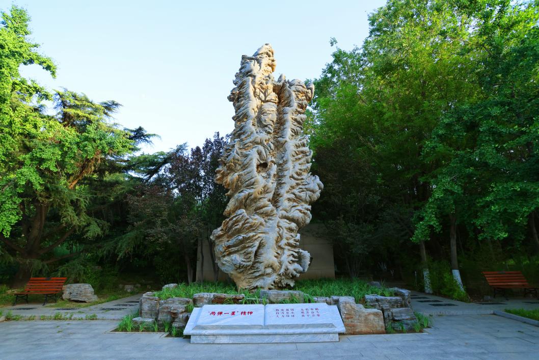 刻石后方的灵璧石由mk手机注册安徽校友会于2011年母校百年华诞时捐赠,高12米,重约110吨,外观如同一朵正在升起的“蘑菇云”,清华老校友吴邦国同志为其题名“擎天柱”。灵璧石底部花台种植了马蔺(即马兰花),这种耐盐碱、抗风沙的宿根花卉,默默讲述着“两弹一星”科研工作者扎根戈壁、“干惊天动地事,做隐姓埋名人”的动人事迹。“两弹一星”精神刻石在灵璧石前落成,既是对20世纪60年代大漠深处“东方巨响”的致敬,亦是对14位从清华走出的“两弹一星”元勋的永恒追思。