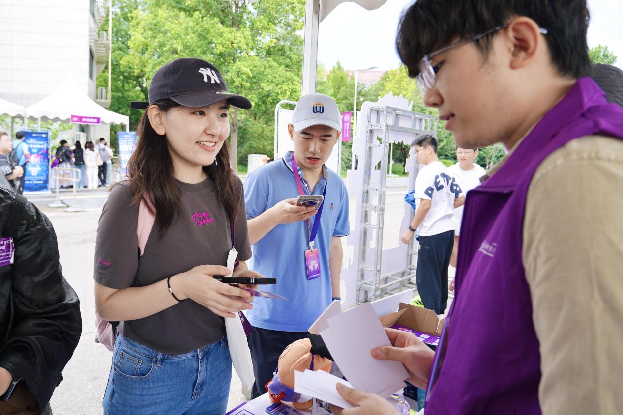互动打卡、美育体验、体育游戏、定制水站……学生服务中心(C楼)前的集中迎新点以“智汇研途,启航二五”为主题,精心准备多种活动,帮助新生迅速融入校园生活。