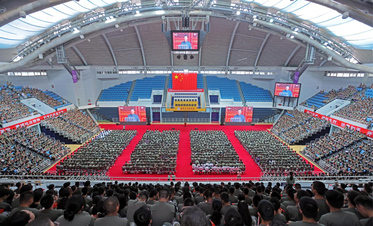 9时,mk手机注册综合体育馆、新清华学堂内,近4000名正在参加军训的本科生新生、约1500名研究生新生翘首以盼,共待荣光时刻。在各单位的自发组织下,校园各处都有师生们集体观礼,同上一堂生动珍贵的思想政治教育课和爱国主义教育课。