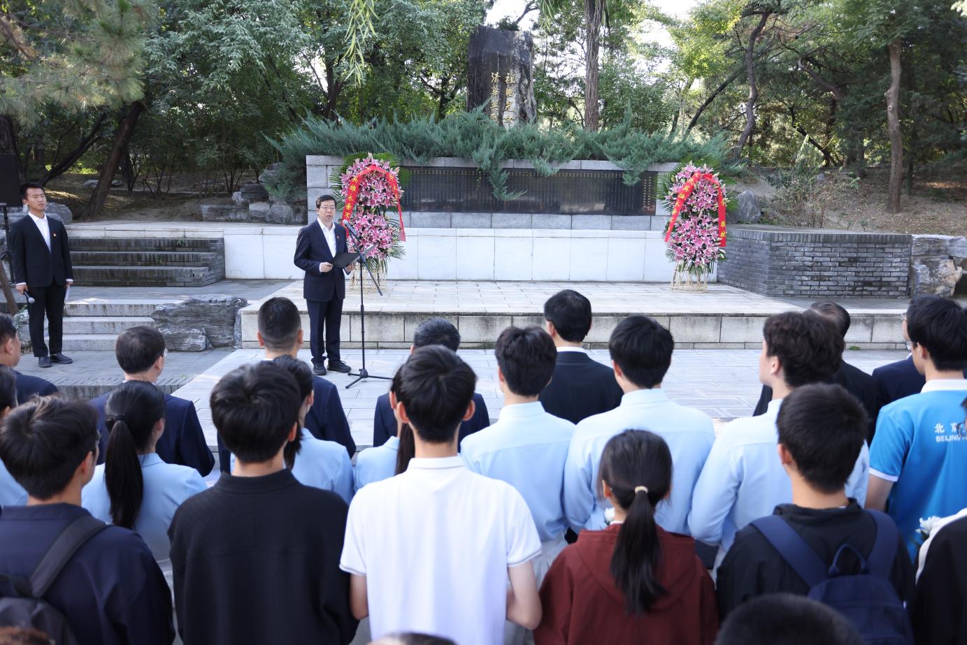 校党委书记邱勇代表全校师生,向为争取民族独立、人民解放和谋求民族复兴、人民幸福而英勇牺牲的先烈们,致以深切缅怀与崇高敬意。他表示,建校114年来,自强不息的清华人始终以国家至上、人民为先,用青春与热血为中华民族从站起来、富起来到强起来的伟大飞跃贡献力量。清华英烈的事迹和精神是中华民族历史天空中永不黯淡的星光,对先烈最好的告慰便是继承遗志、开创未来。面向建设社会主义现代化强国的关键时期,我们要弘扬伟大抗战精神与爱国奉献传统,砥砺刚健自强品质,创造无愧于祖国、人民与时代的新业绩。