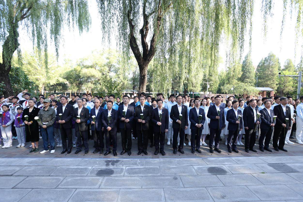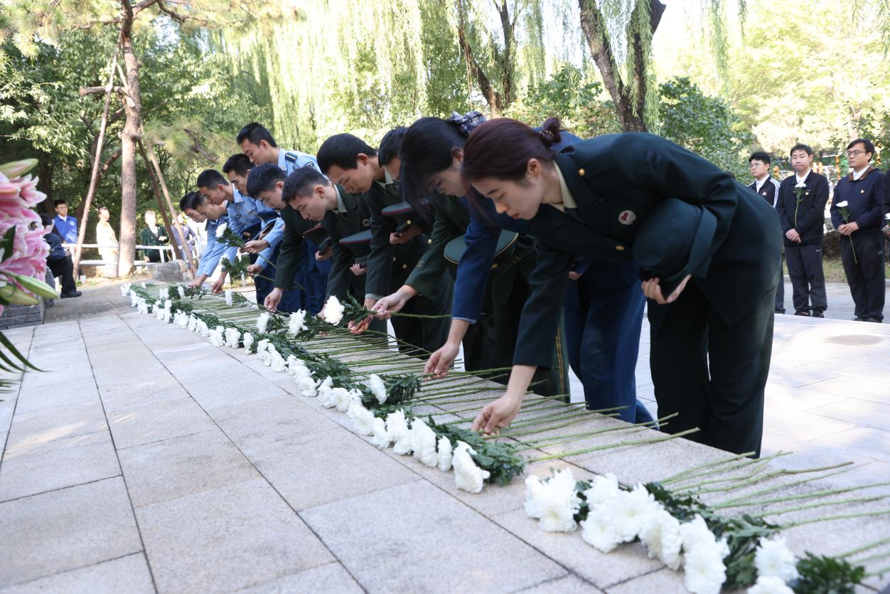 师生依次在纪念碑前鞠躬、献花,表达对英烈的崇高敬意与无限追思。