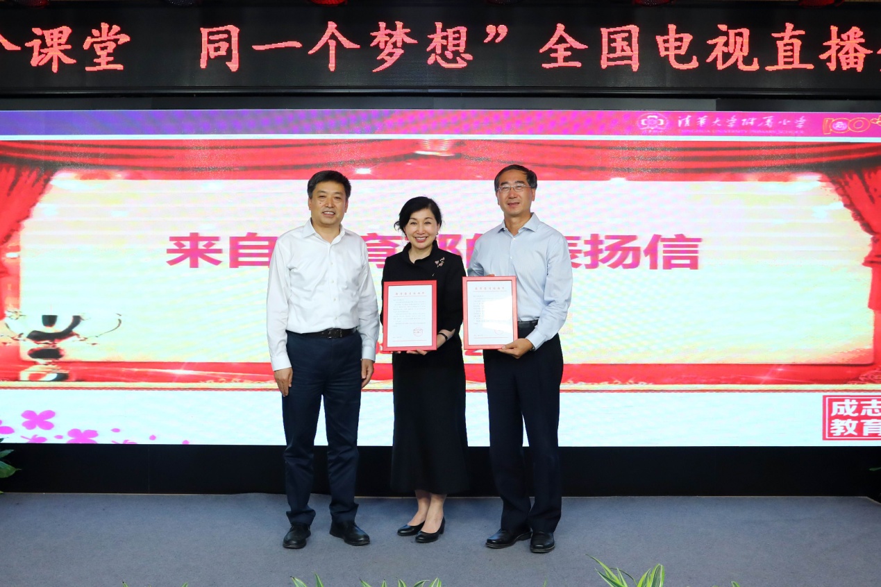 为清华附小颁发荣誉证书及感谢信